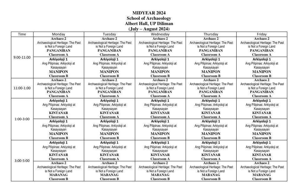 Class Schedule (Undergraduate) School of Archaeology , Online today 2024 residency showcase.